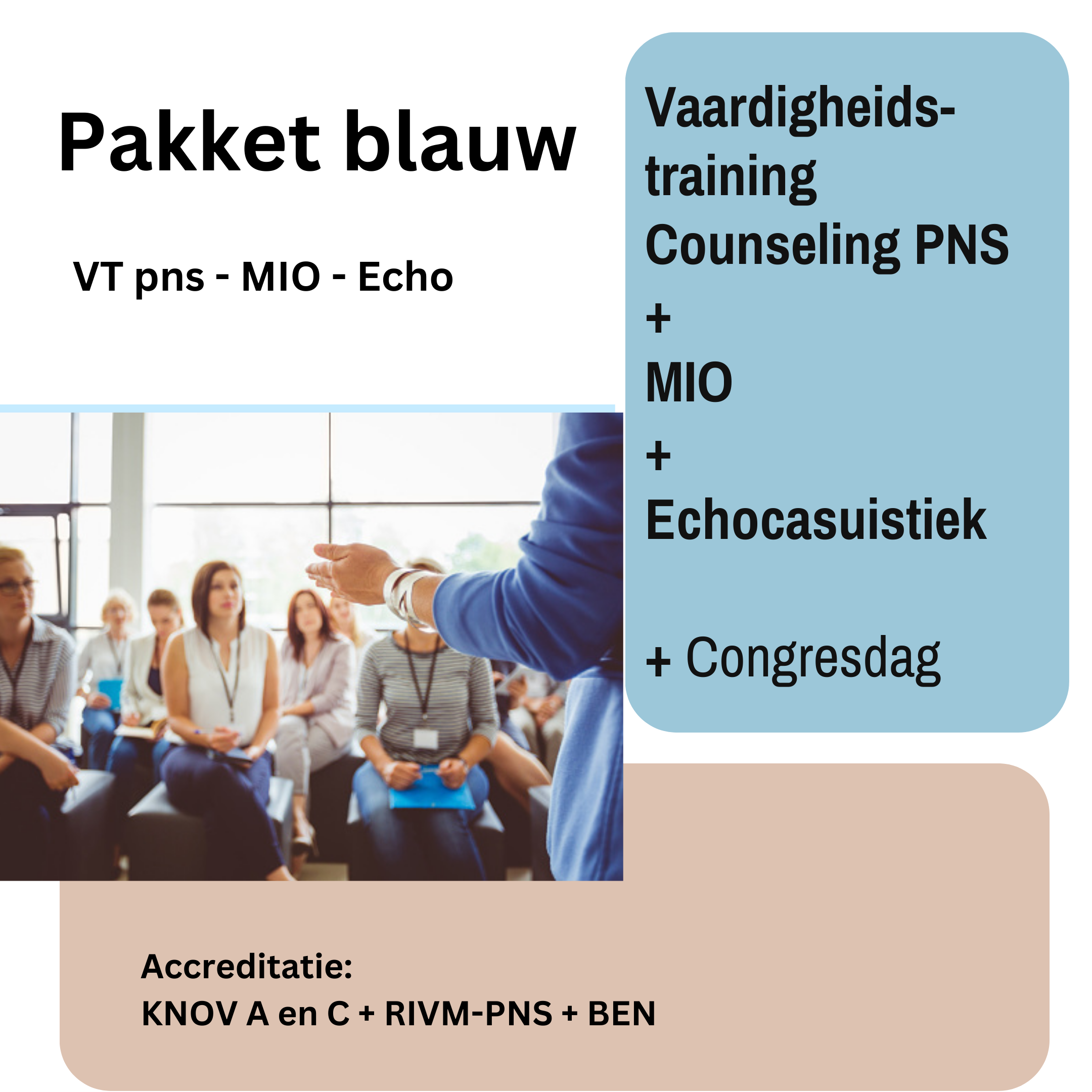 Ga voor verdieping en reflectie met Pakket BLAUW. Je volgt de vaardigheidstraining Counseling Prenatale Screening (1.0 of 2.0), kiest voor extra inhoudelijke verdieping met de MIO Continuïteit van zorgverlener en bespreekt uitdagende voorbeelden uit de dagelijkse praktijk tijdens de echocasuïstiek. Een pakket dat theorie en praktijk samenbrengt en je helpt om je rol als zorgverlener verder te versterken – mét accreditatiepunten.